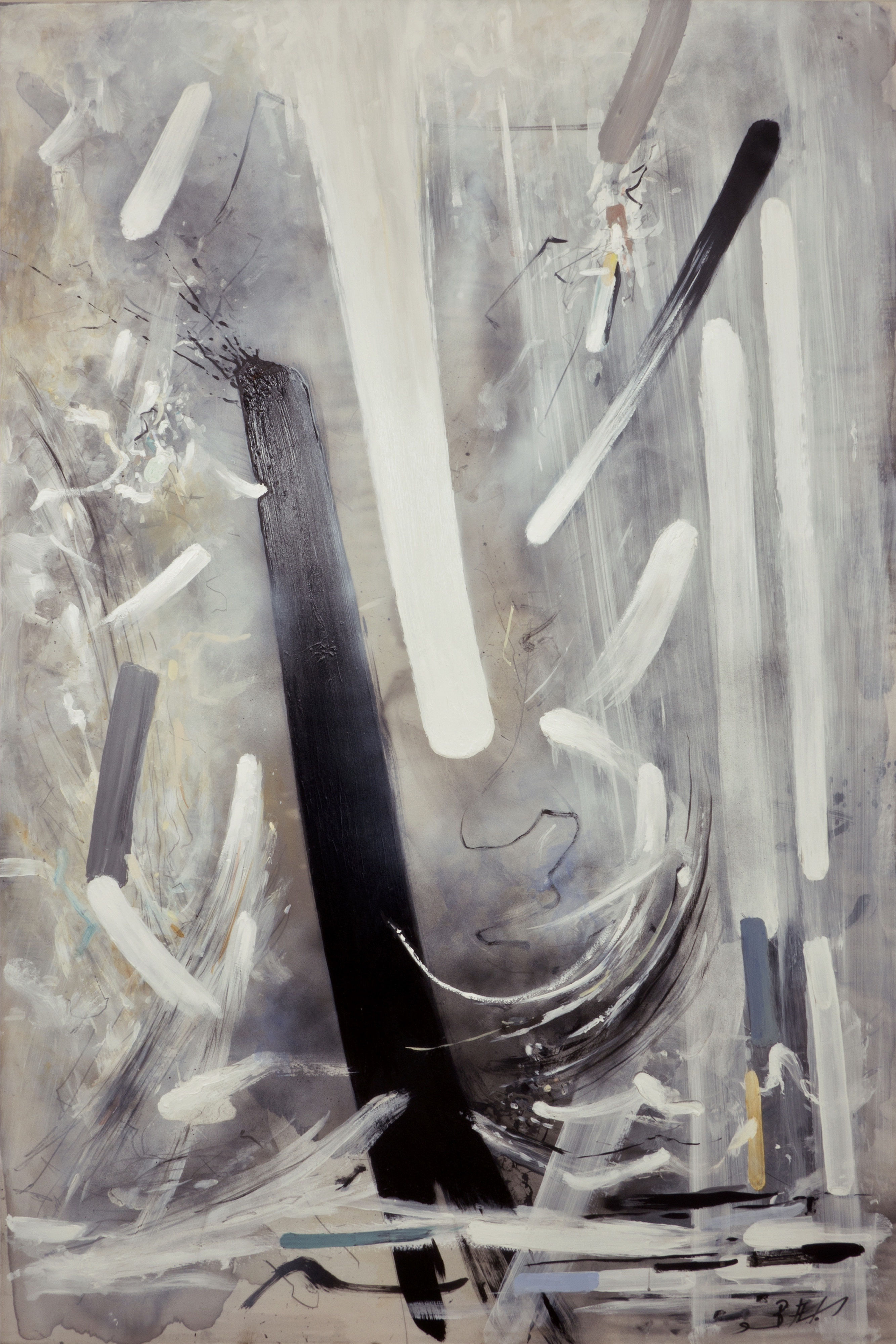 His paintings are the first thing you see when walking downstairs and there is something so minimalistic, so moody, but so touching. It feels like being in a storm, wanting to cuddle up on the couch with a cup of tea and candles enjoying the noise of the storm outside. From his bio I understood that all his paintings have a poetic element in them, which totally makes sense when looking at them.