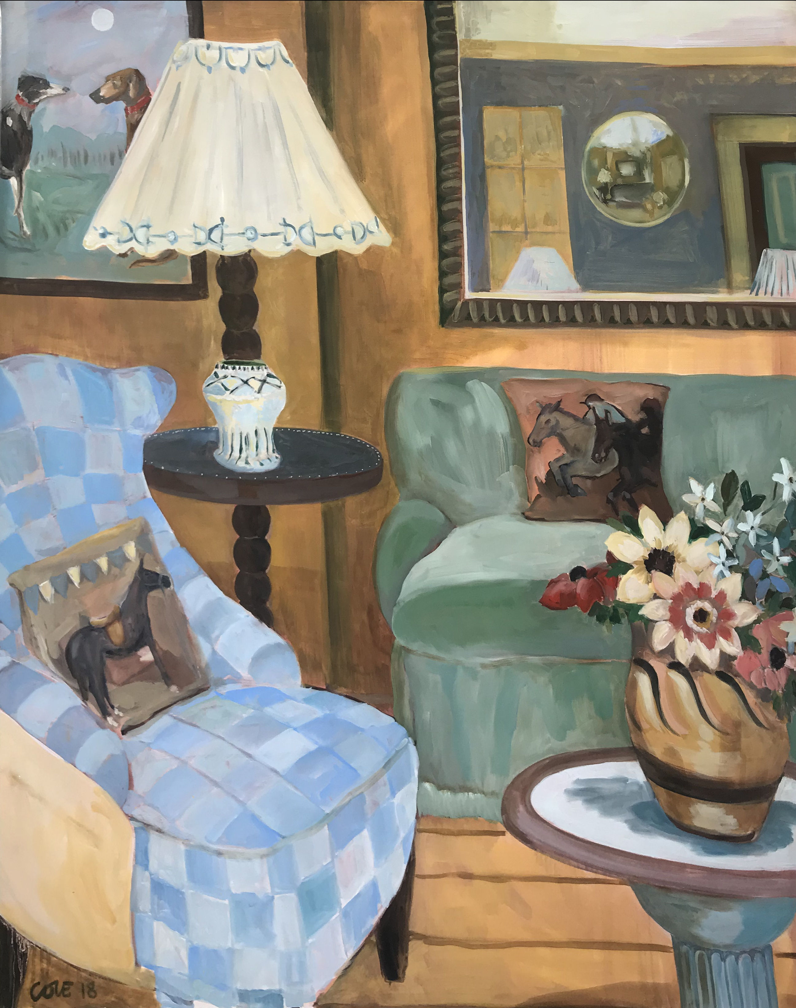 Interior with Blue Armchair, Duncan Grant Ceramic Vessel & Christopher Wood flowers